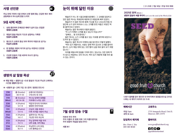 2021-07-18 페이지 정보 작성자 선한열매교회 댓글 0건 조회 3,608회 작성일 21-07-17 14:35 목록 본문 GFC 2021-07-18 주보 이전글2021-07-25 21.07.24 다음글2021-07-11 21.07.10 댓글 0 댓글목록 등록된 댓글이 없습니다. 목록