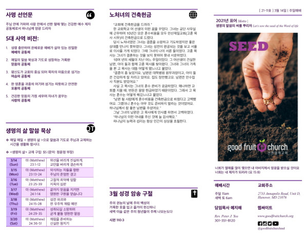 2021-03-14 페이지 정보 작성자 선한열매교회 댓글 0건 조회 3,376회 작성일 21-04-03 00:10 목록 본문 2021-03-14 이전글2021-03-21 21.04.11 다음글2021-03-07 21.04.03 댓글 0 댓글목록 등록된 댓글이 없습니다. 목록