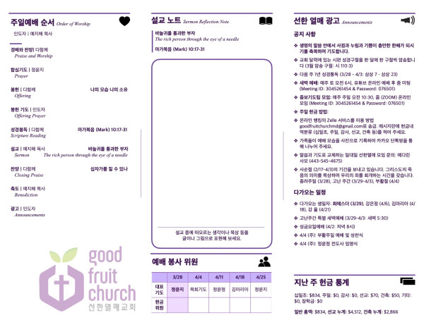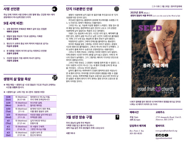 2021-03-28 페이지 정보 작성자 선한열매교회 댓글 0건 조회 3,333회 작성일 21-04-12 05:40 목록 본문 2021-03-28 주보 이전글2021-04-04 21.04.12 다음글2021-03-21 21.04.11 댓글 0 댓글목록 등록된 댓글이 없습니다. 목록