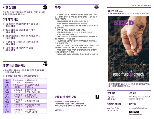 2021-08-01 페이지 정보 작성자 선한열매교회 댓글 0건 조회 3,650회 작성일 21-07-31 18:53 목록 본문 GFC 2021-08-01 주보 이전글2021-08-08 21.08.09 다음글2021-07-25 21.07.24 댓글 0 댓글목록 등록된 댓글이 없습니다. 목록