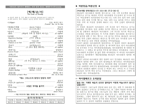 2024년 12월 8일 주일주보 페이지 정보 작성자 오비도제일장로교회 댓글 0건 조회 2,218회 작성일 24-12-12 08:10 목록 본문 2024년 12월 8일 주일주보입니다. 이전글2024년 12월 15일 주일주보 24.12.18 다음글2024년 12월 1일 주일주보 24.12.04 댓글 0 댓글목록 등록된 댓글이 없습니다. 목록