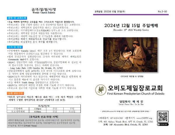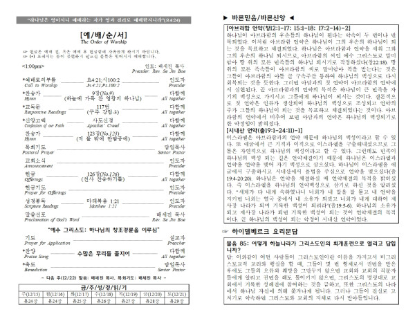2024년 12월 15일 주일주보 페이지 정보 작성자 오비도제일장로교회 댓글 0건 조회 2,162회 작성일 24-12-18 19:31 목록 본문 2024년 12월 15일 주일주보입니다. 이전글2024년 12월 22일 주일주보 24.12.25 다음글2024년 12월 8일 주일주보 24.12.12 댓글 0 댓글목록 등록된 댓글이 없습니다. 목록