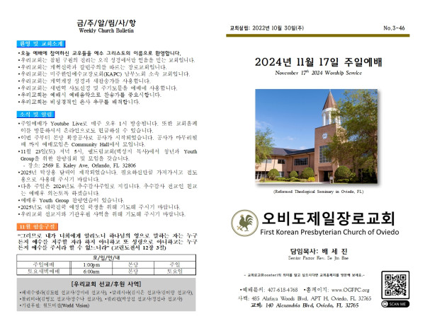 2024년 11월 17일 주일주보 페이지 정보 작성자 오비도제일장로교회 댓글 0건 조회 2,602회 작성일 24-11-21 06:33 목록 본문 2024년 11월 17일 주일주보입니다. 이전글2024년 11월 24일 주일주보 24.11.24 다음글2024년 11월 10일 주일주보 24.11.11 댓글 0 댓글목록 등록된 댓글이 없습니다. 목록
