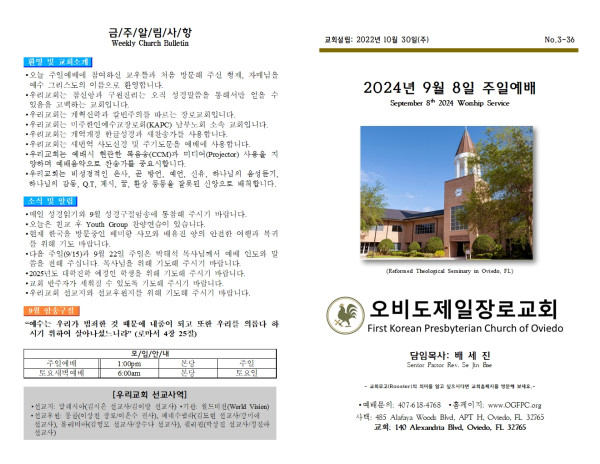 2024년 9월 8일 주일주보 페이지 정보 작성자 오비도제일장로교회 댓글 0건 조회 1,890회 작성일 24-09-08 17:10 목록 본문 2024년 9월 8일 주일주보입니다. 이전글2024년 9월 15일 주일주보 24.10.03 다음글2024년 9월 1일 주일주보 24.09.07 댓글 0 댓글목록 등록된 댓글이 없습니다. 목록
