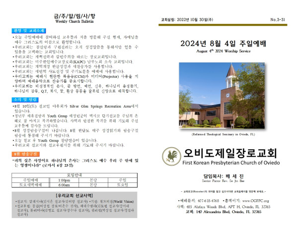 2024년 8월 4일 주일주보 페이지 정보 작성자 오비도제일장로교회 댓글 0건 조회 1,890회 작성일 24-08-05 06:40 목록 본문 2024년 8월 4일 주일주보입니다. 이전글2024년 8월 11일 주일주보 24.08.12 다음글2024년 7월 28일 주일주보 24.07.31 댓글 0 댓글목록 등록된 댓글이 없습니다. 목록