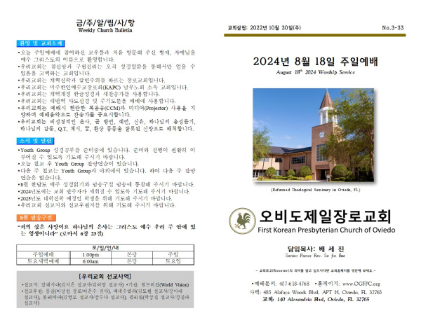 2024년 8월 18일 주일주보 페이지 정보 작성자 오비도제일장로교회 댓글 0건 조회 2,580회 작성일 24-08-21 17:37 목록 본문 2024년 8월 18일 주일주보입니다. 이전글2024년 8월 25일 주일주보 24.08.26 다음글2024년 8월 11일 주일주보 24.08.12 댓글 0 댓글목록 등록된 댓글이 없습니다. 목록