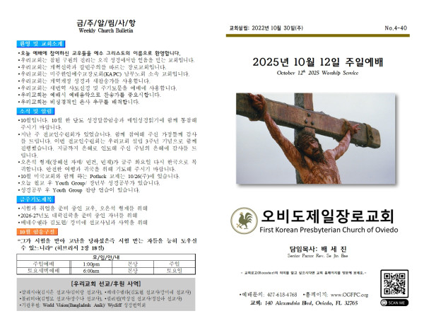 2025년 10월 12일 주일주보 페이지 정보 작성자 오비도제일장로교회 댓글 0건 조회 388회 작성일 25-10-11 17:58 목록 본문 2025년 10월 12일 주일주보입니다. 이전글2025년 10월 19일 주일주보 25.10.19 다음글2025년 9월 28일 주일주보 25.09.28 댓글 0 댓글목록 등록된 댓글이 없습니다. 목록