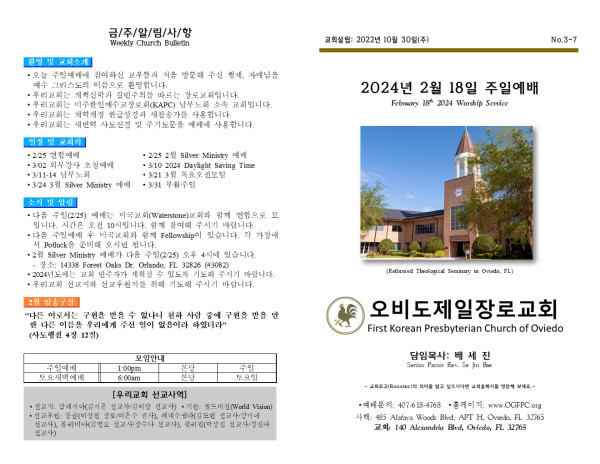 2024년 2월 18일 주일주보 페이지 정보 작성자 오비도제일장로교회 댓글 0건 조회 3,043회 작성일 24-02-21 15:32 목록 본문 2024년 2월 18일 주일주보입니다. 이전글2024년 3월 10일 주일주보 24.03.10 다음글2024년 2월 11일 주일주보 24.02.15 댓글 0 댓글목록 등록된 댓글이 없습니다. 목록