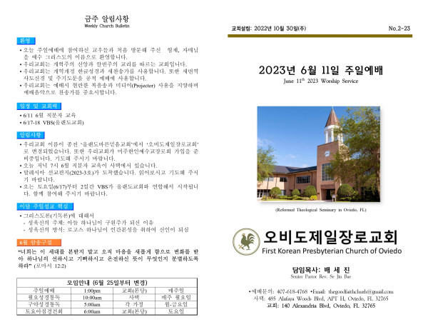 2023년 6월 11일 주일주보 페이지 정보 작성자 오비도제일장로교회 댓글 0건 조회 3,774회 작성일 23-06-12 05:40 목록 본문 2023년 6월 11일 주일주보입니다. 이전글2023년 6월 18일 주일주보 23.06.19 다음글2023년 6월 4일 주일주보 23.06.05 댓글 0 댓글목록 등록된 댓글이 없습니다. 목록