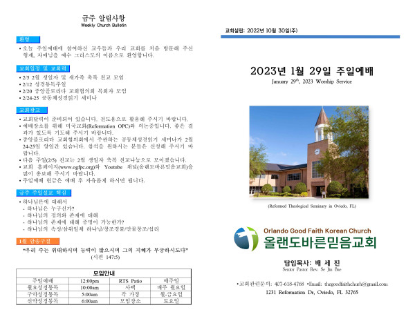 2023년 1월 29일 주일주보 페이지 정보 작성자 올랜도바른믿음교회 댓글 0건 조회 3,315회 작성일 23-01-30 04:29 목록 본문 2023년 1월 29일 주일주보입니다. 이전글2023년 2월 5일 주일주보 23.02.05 다음글2023년 1월 22일 주일주보 23.01.23 댓글 0 댓글목록 등록된 댓글이 없습니다. 목록