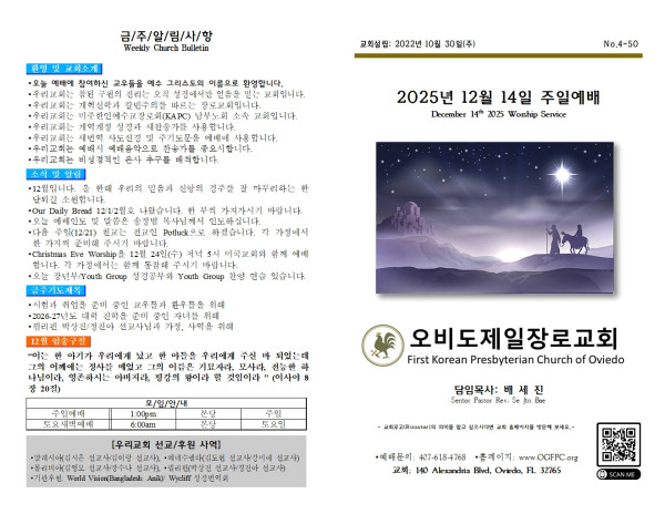 2025년 12월 14일 주일주보 페이지 정보 작성자 오비도제일장로교회 댓글 0건 조회 34회 작성일 25-12-13 18:21 목록 본문 2025년 12월 14일 주일주보입니다. 다음글2025년 12월 7일 주일주보 25.12.06 댓글 0 댓글목록 등록된 댓글이 없습니다. 목록