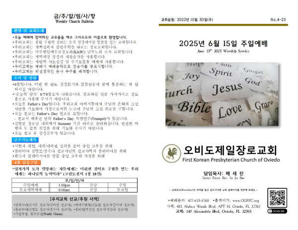 2025년 6월 15일 주일주보 페이지 정보 작성자 오비도제일장로교회 댓글 0건 조회 1,067회 작성일 25-06-13 07:07 목록 본문 2025년 6월 15일 주일주보입니다. 이전글2025년 6월 22일 주일주보 25.06.21 다음글2025년 6월 8일 주일주보 25.06.10 댓글 0 댓글목록 등록된 댓글이 없습니다. 목록