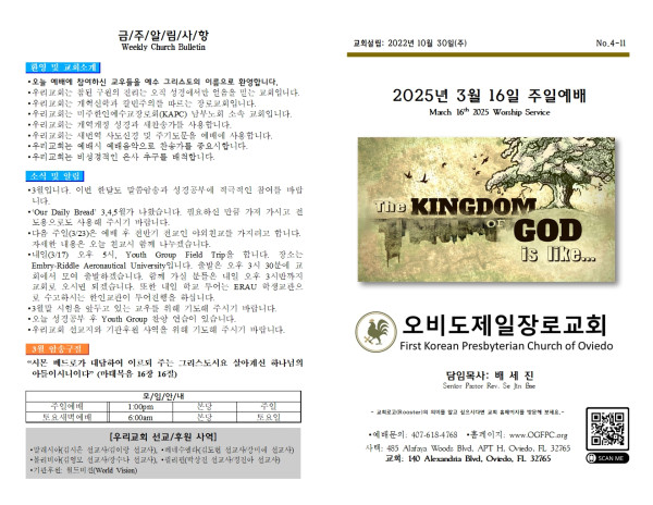 2025년 3월 16일 주일주보 페이지 정보 작성자 오비도제일장로교회 댓글 0건 조회 1,365회 작성일 25-03-21 10:29 목록 본문 2025년 3월 16일 주일주보입니다. 이전글2025년 3월 23일 주일주보 25.03.25 다음글2025년 3월 9일 주일주보 25.03.11 댓글 0 댓글목록 등록된 댓글이 없습니다. 목록