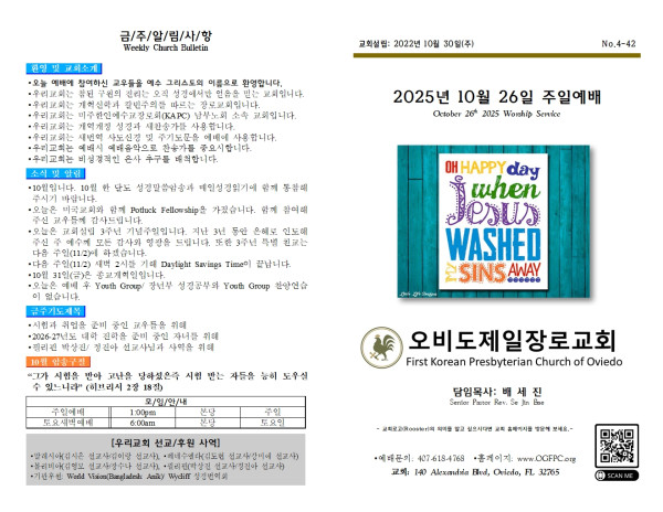 2025년 10월 26일 주일주보 페이지 정보 작성자 오비도제일장로교회 댓글 0건 조회 260회 작성일 25-10-28 14:02 목록 본문 2025년 10월 26일 주일주보입니다. 이전글2025년 11월 2일 주일주보 25.11.02 다음글2025년 10월 19일 주일주보 25.10.19 댓글 0 댓글목록 등록된 댓글이 없습니다. 목록