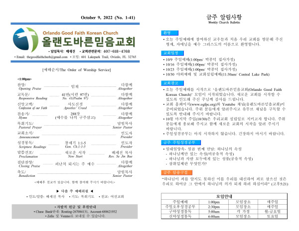 2022년 10월 9일 주일주보 페이지 정보 작성자 올랜도바른믿음교회 댓글 0건 조회 2,896회 작성일 22-10-09 17:45 목록 본문 2022년 10월 9일 주일주보입니다. 이전글2022년 10월 30일 주일주보 22.10.30 댓글 0 댓글목록 등록된 댓글이 없습니다. 목록