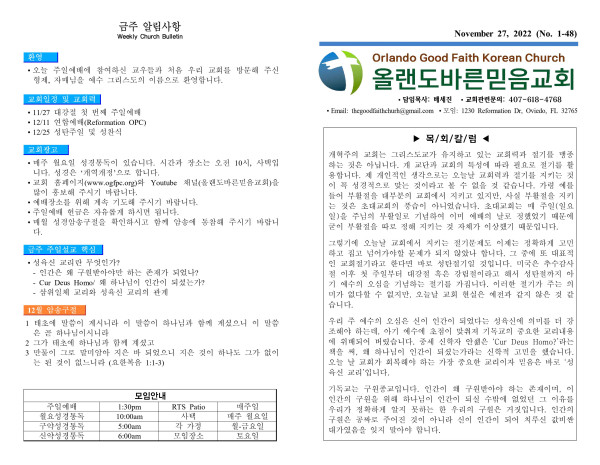 2022년 11월 27일 주일주보 페이지 정보 작성자 올랜도바른믿음교회 댓글 0건 조회 3,814회 작성일 22-11-27 20:01 목록 본문 2022년 11월 27일 주일주보입니다. 이전글2022년 12월 4일 주일주보 22.12.05 다음글2022년 11월 20일 주일주보 22.11.20 댓글 0 댓글목록 등록된 댓글이 없습니다. 목록